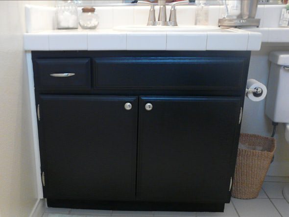 It was a comedy of errors painting this cabinet, but don’t you think it was worth it? It was a realtively easy change and way less than a new sink/cabinet combo (thanks, Karen!).