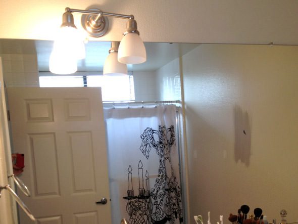 The light fixture isn’t terrible, but it has rusted and the right side is broken. I decided the light has to go! And, also that big mirror that takes up the entire wall is so typical in LA apartments.