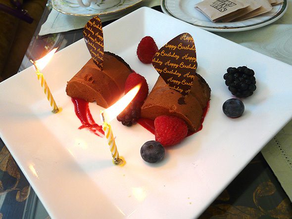 Our waiter made our day, surprising us with a little birthday mousse complete with candles.