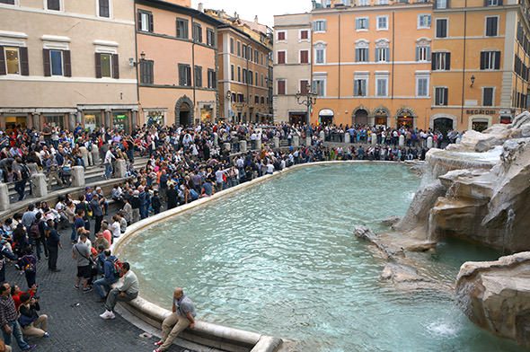 This is Trevi Fountain. Are. you. kidding. me? And here I had visions of a romantic stroll, hand-in-hand with nobody around to watch us throw three coins in to ensure our return. (I kept my coins.)