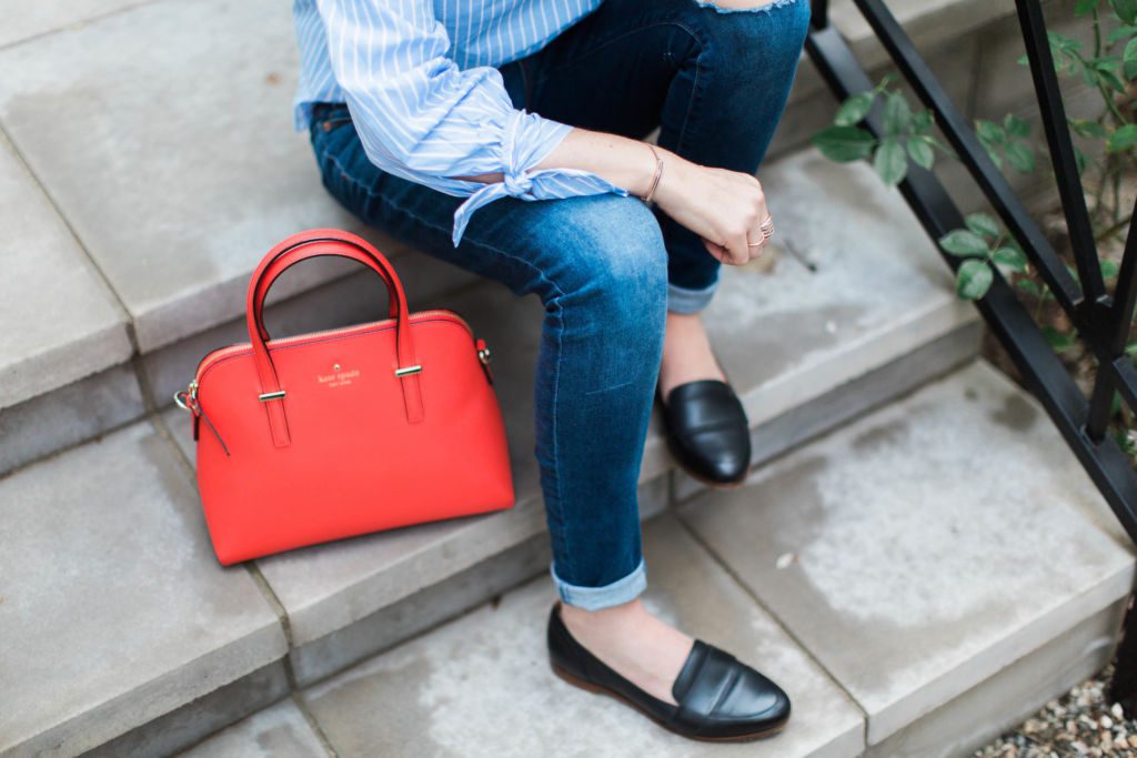 Kate Spade Cedar Street Purse // Coraline One-Shoulder Top // Sézane Loafers