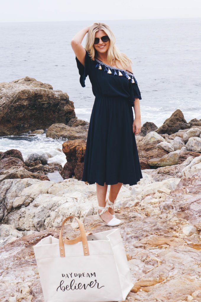 Tularosa Fiesta Dress // Soludos Ankle-Tie Espadrilles // Adornlee Tote (similar) // Ray-Ban Aviators