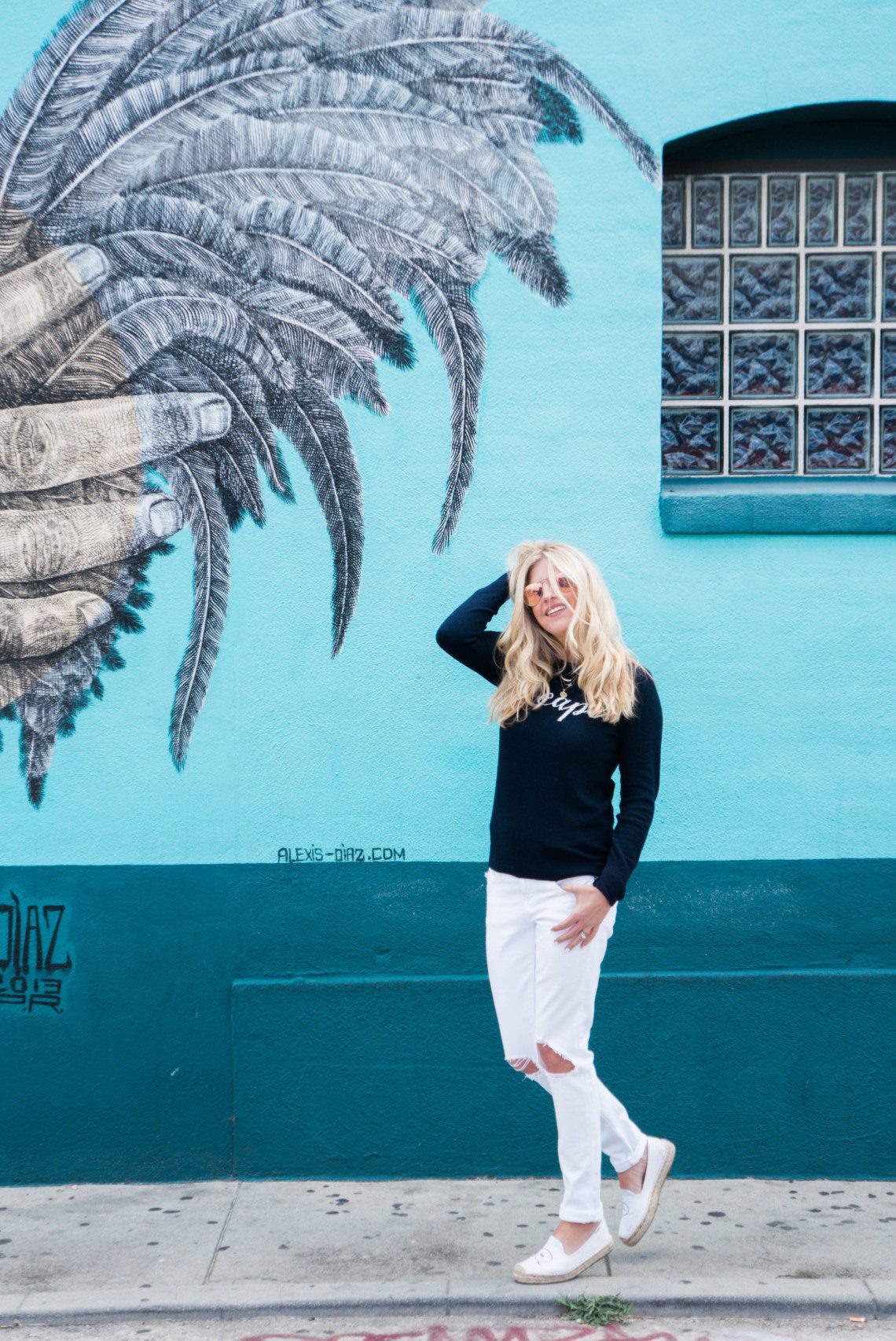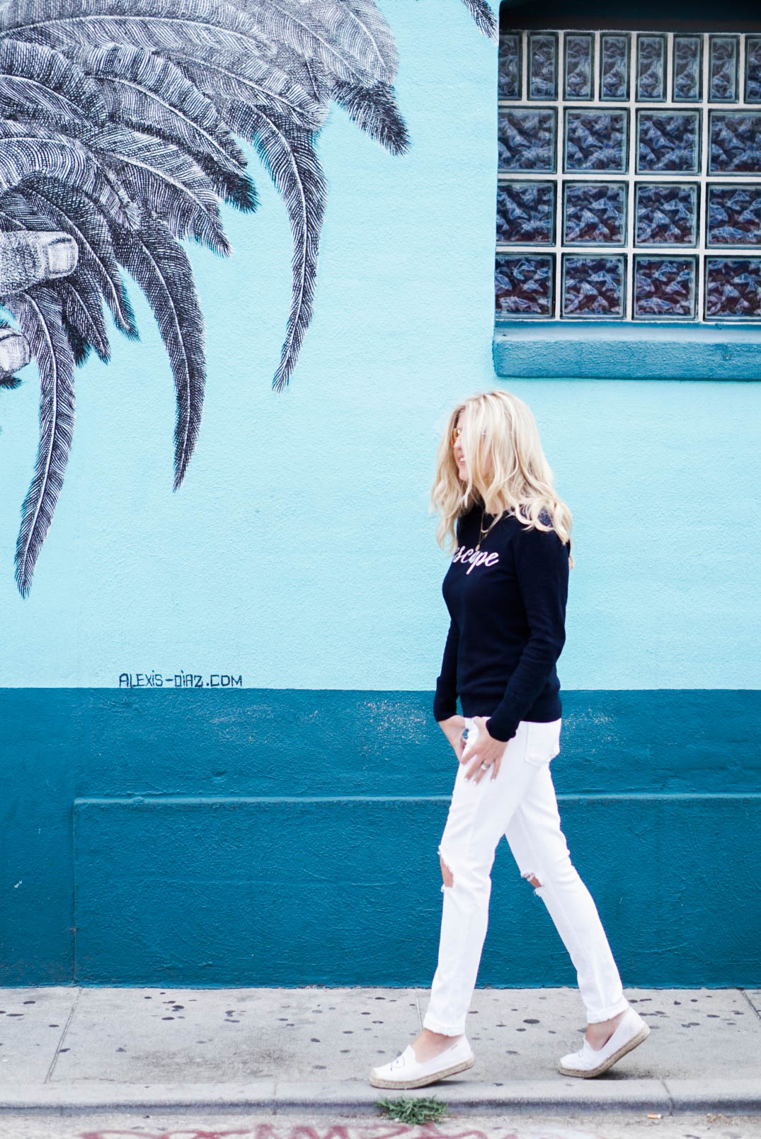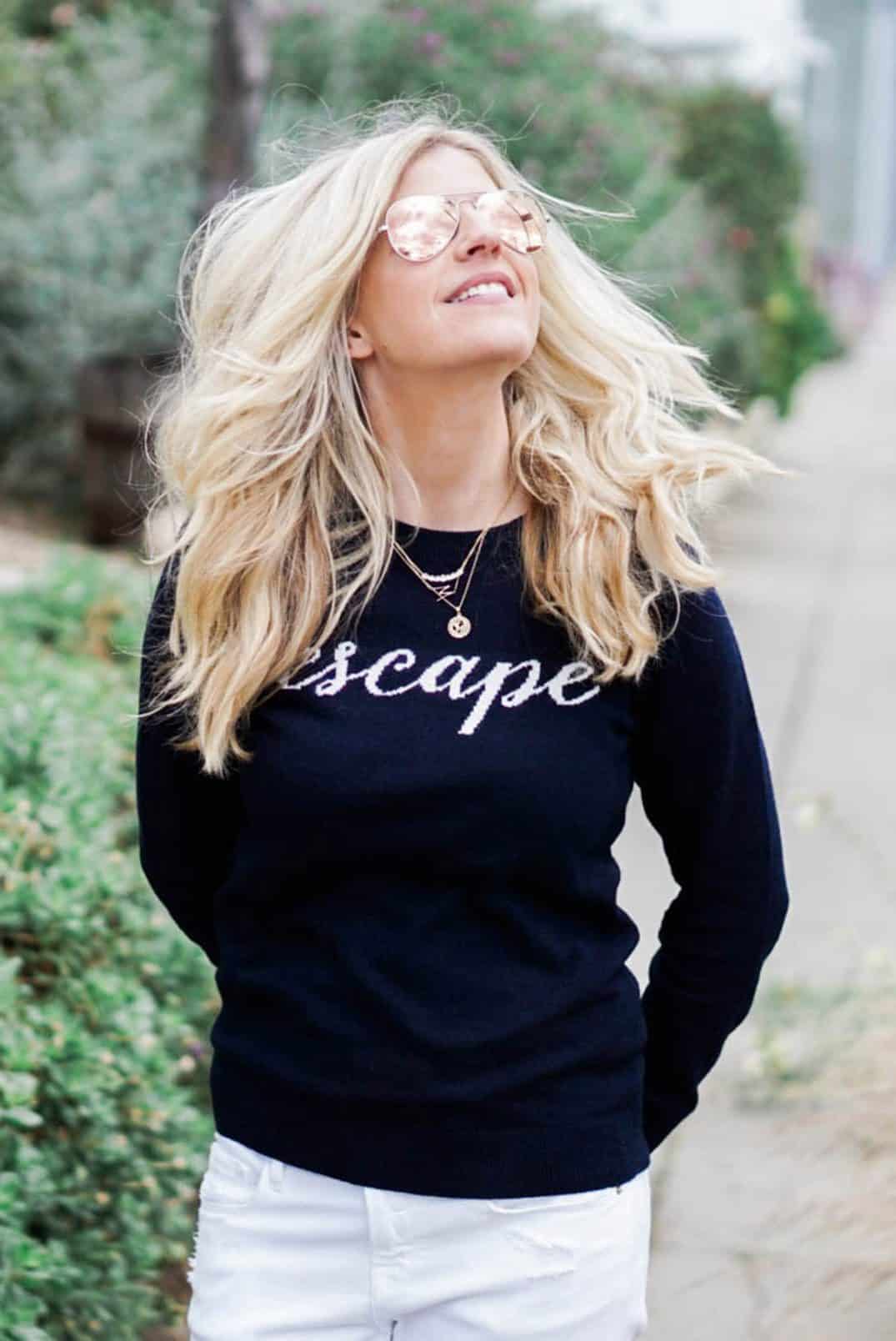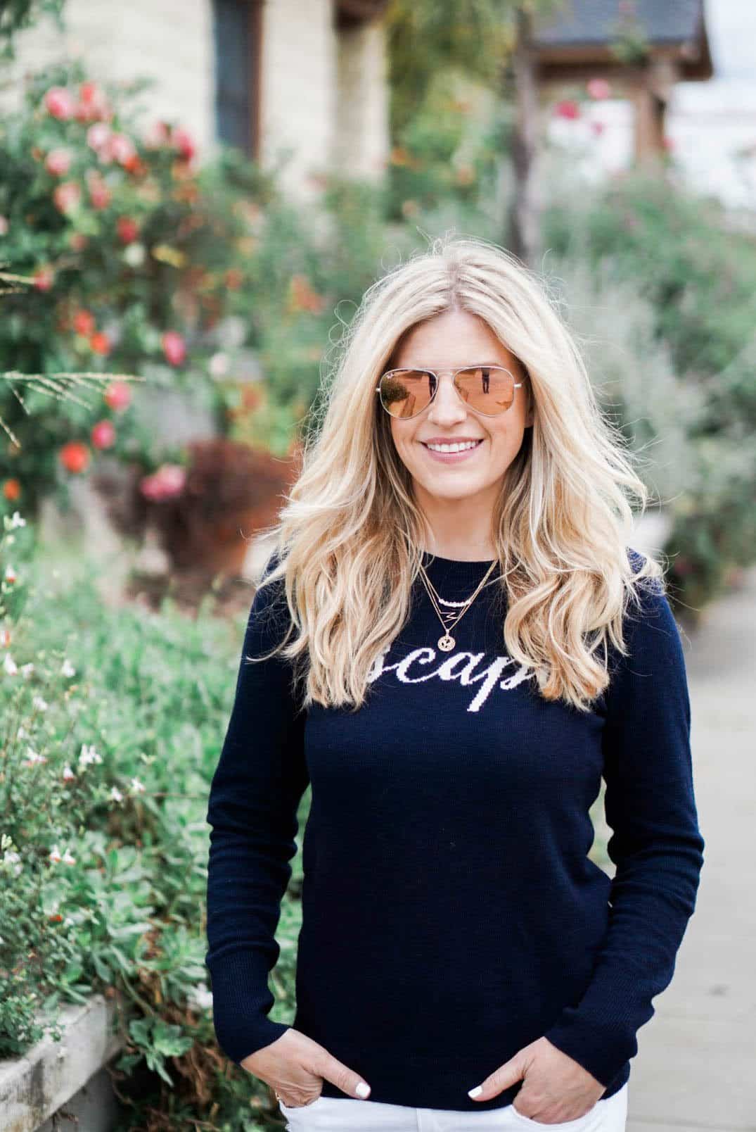 Escape Cashmere Sweater // Frame Jeans // Soludos // Sunglasses // Gorjana Necklace