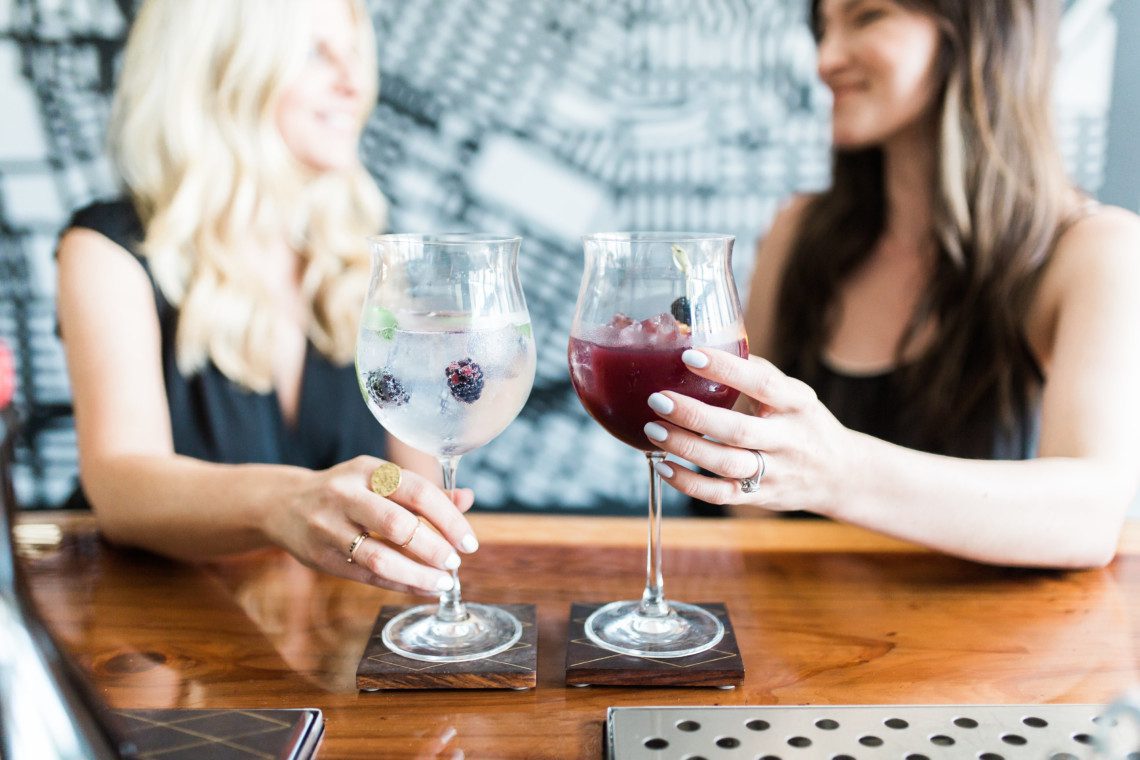 Hero Shot: At the chic cocktail bar with a drink in tow.