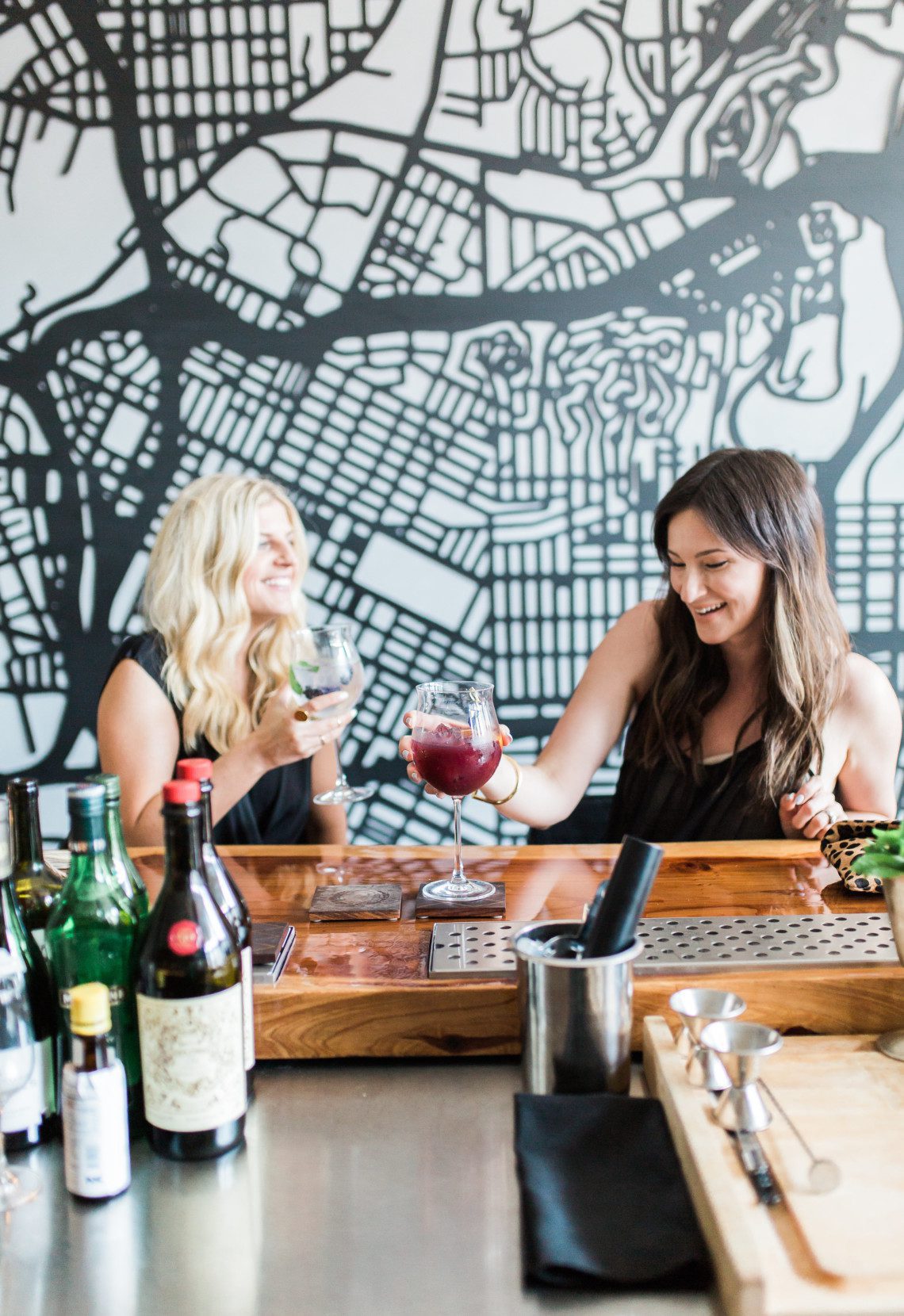 Hero Shot: At the chic cocktail bar with a drink in tow.