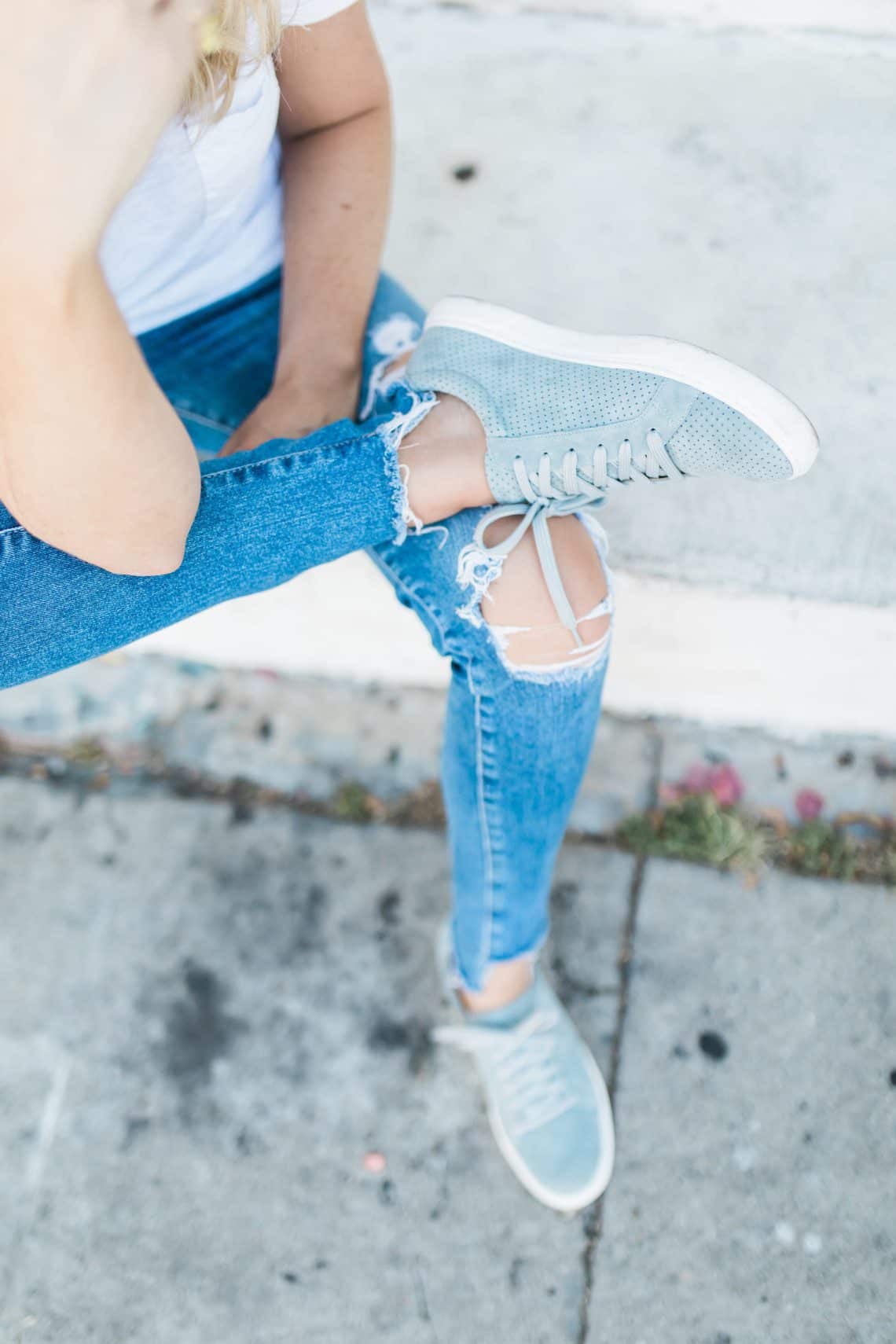 It’s that time of year again, when it’s not quite fall, but summer is fleeting. I’ve officially packed away my favorite Supergas for summer travel, and have transitioned to a more luxe material in the form of these suede perforated sneakers. Wear them with t-shirts and sweaters, or the very on-trend midi skirts, and they are sure to take you well into next spring. While you can find seude in a multitude of colors, choose a more neutral palette like my light blue ones or a dusty rose that are more versatile. Comfortable, affordable, classic, yet on-trend, a great pair of sneakers are always going in my carry-on. Just don’t forget those skimmers!